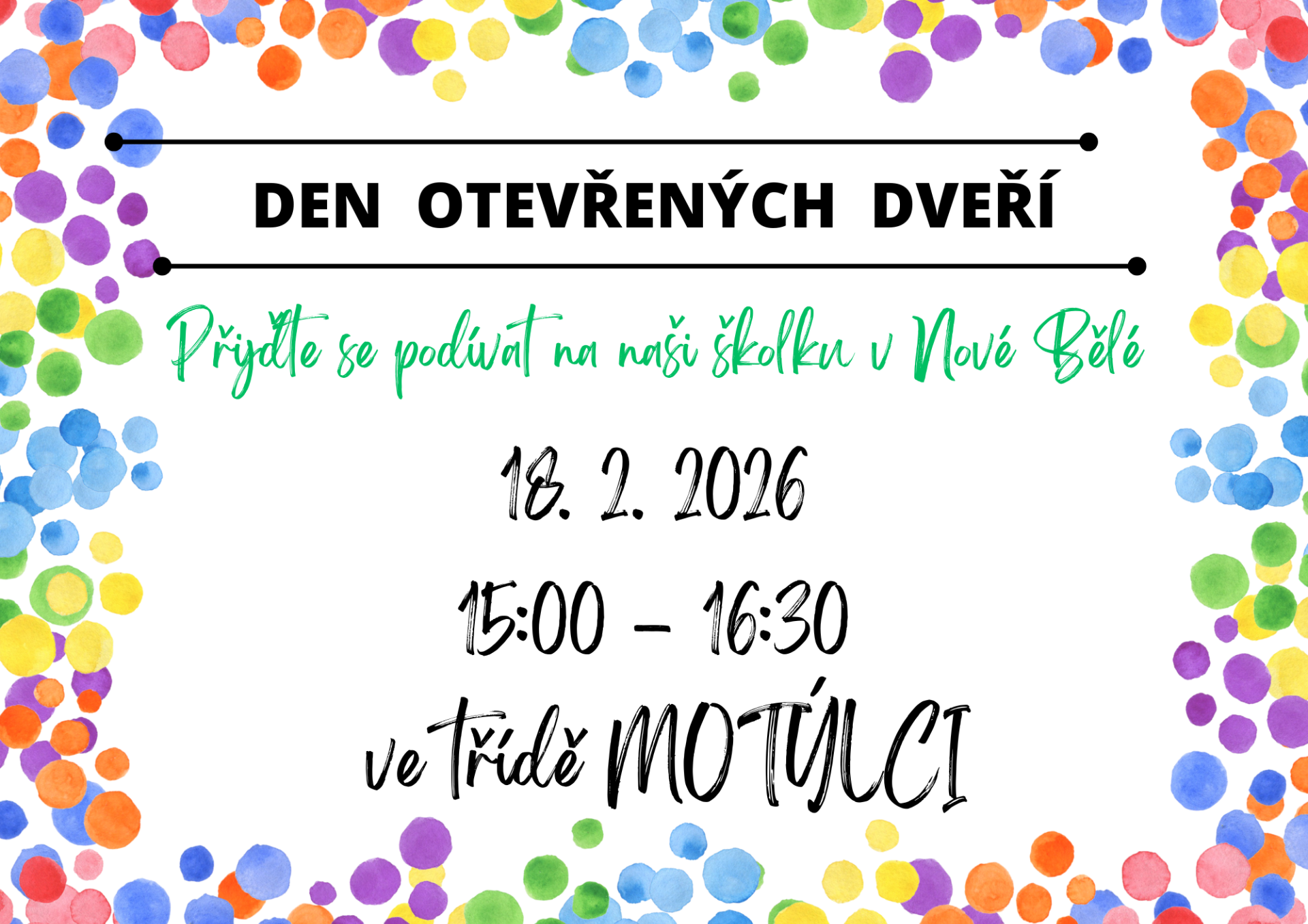 DEN OTEVŘENÝCH DVEŘÍ 18.2.2026 v 15:00 - 16:30